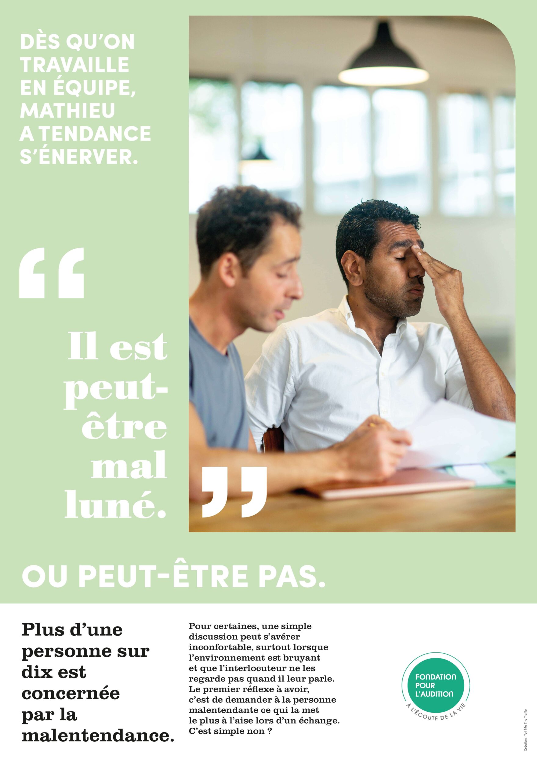 Une campagne d’affiches pour dévoiler les surdités, lever les tabous autour de celles-ci, c’est aussi le pari qu’a fait la Fondation Pour l’Audition en 2019, en proposant aux structures qui le désirent une campagne composée de 5 affiches dévoilant des situations du quotidien vécues par les personnes sourdes ou malentendantes elle-même. Plus d’une cinquantaine de structures en ont déjà fait la démarche, en ce sens, afin de sensibiliser leurs collaborateurs en faveur de l’inclusion et du changement de regard sur les surdités.